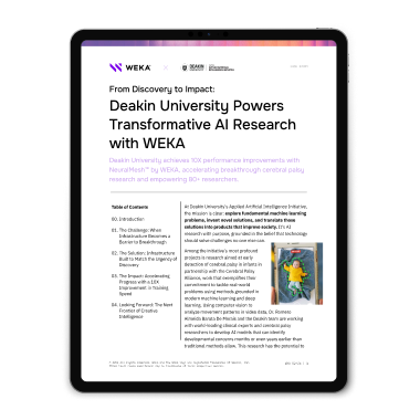 From earlier cerebral palsy diagnosis to breakthroughs yet to come in diverse sectors, NeuralMesh by WEKA is helping ensure that at Deakin Applied AI, the only limit to solving society’s pressing problems is imagination, not infrastructure.