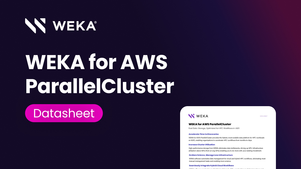 WEKA software combined with AWS ParallelCluster provides the fastest, most scalable data platform for HPC workloads across hybrid and cloud-native deployments running on AWS infrastructure.